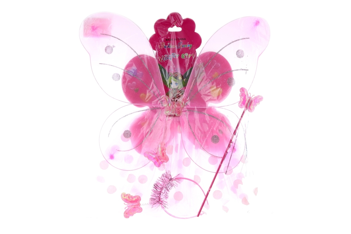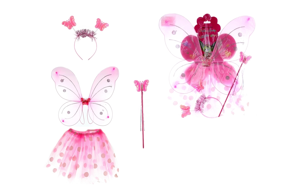 - Vleugels, tutu-rok met stippen, toverstaf, haarband met vlindertjes