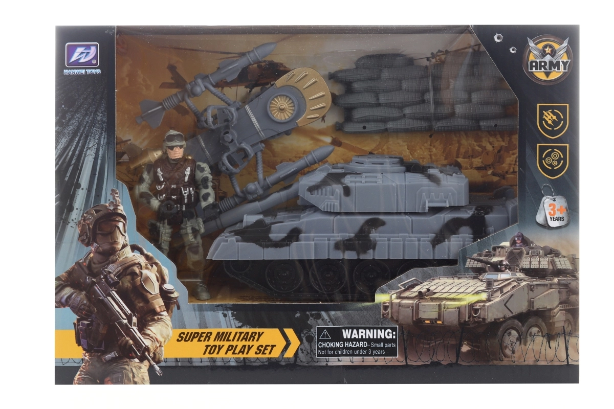 Ontdek actievolle pret met deze militaire set met tank voor kleine avonturiers. De set bevat een soldatenfiguur, een plastic tank en kleinere accessoires voor creatief spel. Geschikt voor kinderen vanaf 3 jaar, verpakt in een praktische doos.