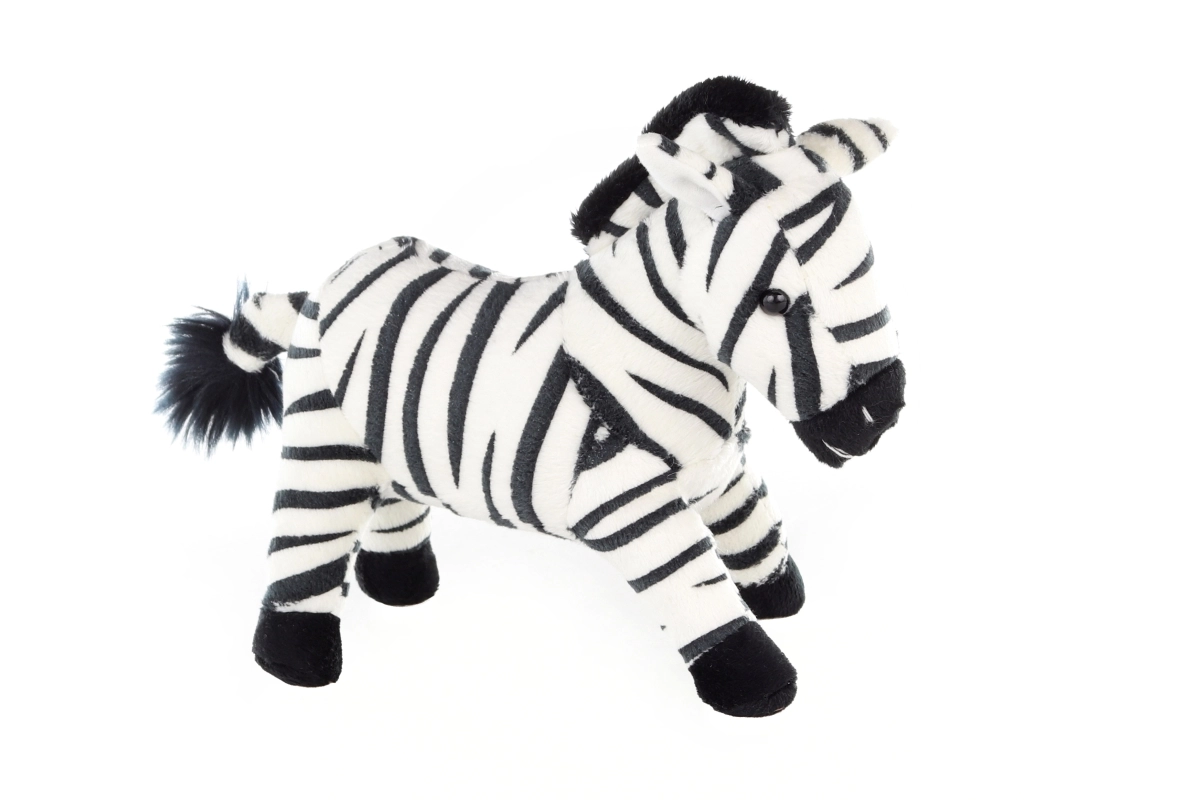 Een schattige pluchen zebra die zowel kinderen als verzamelaars zal verrassen. Hij meet ongeveer 24 cm inclusief staart en dankzij de vulling met kleine korreltjes in het onderste deel van het buikje behoudt hij prettig zijn vorm en zit hij stabiel. Ideaal als knuffel in bed of als decoratie in de kinderkamer. Zacht materiaal, prettig aan de aanraking en realistische uitstraling.