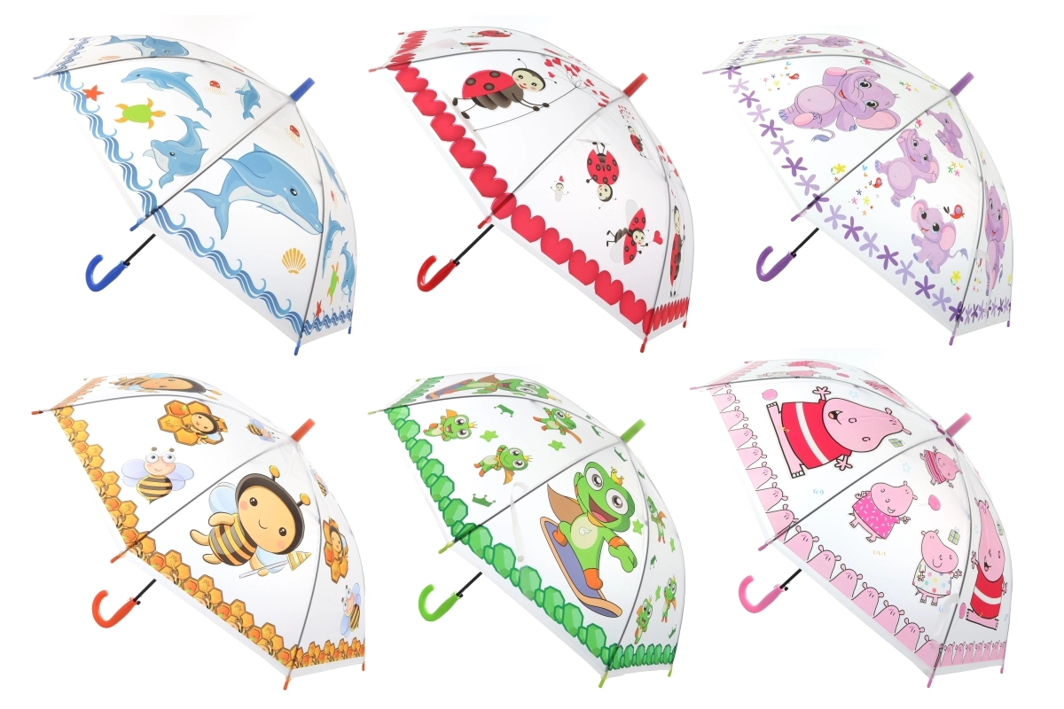 De stijlvolle transparante paraplu met dieren is ideaal voor regenachtige dagen. Met het automatische mechanisme open je hem met één druk op de knop, en het transparante oppervlak zorgt voor goed zicht, zelfs in stevige regen. Vrolijke motieven maken vooral kinderen blij en fleuren elke wandeling naar school of uitstapje op.