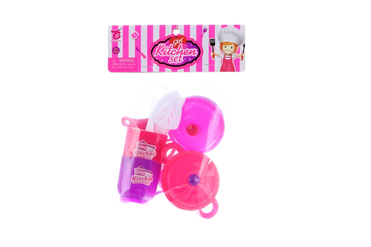 Een leuke plastic servies-set voor kleine koks die creatief spel en motorische vaardigheden stimuleert. Bevat alles wat nodig is voor koken en serveren: een pan en koekenpan met deksels, 2 bekertjes, een mesje, een lepel, een opener en een taartschep. Geschikt voor kinderen vanaf 3 jaar.