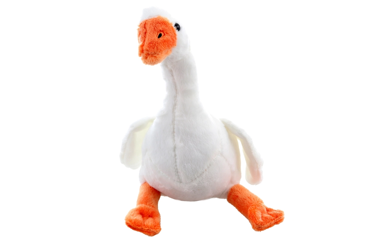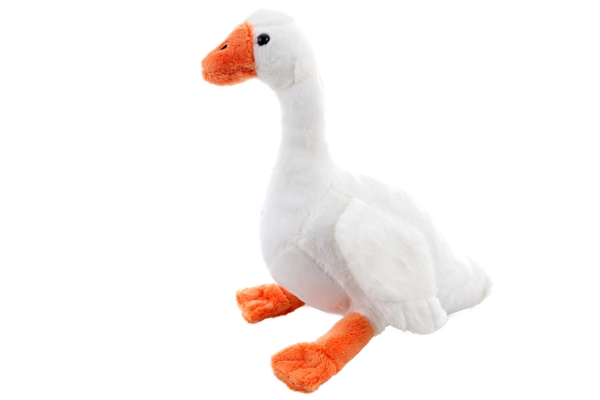 Het witte lijfje met oranje snaveltje en pootjes stimuleert fantasierijk spelen.
