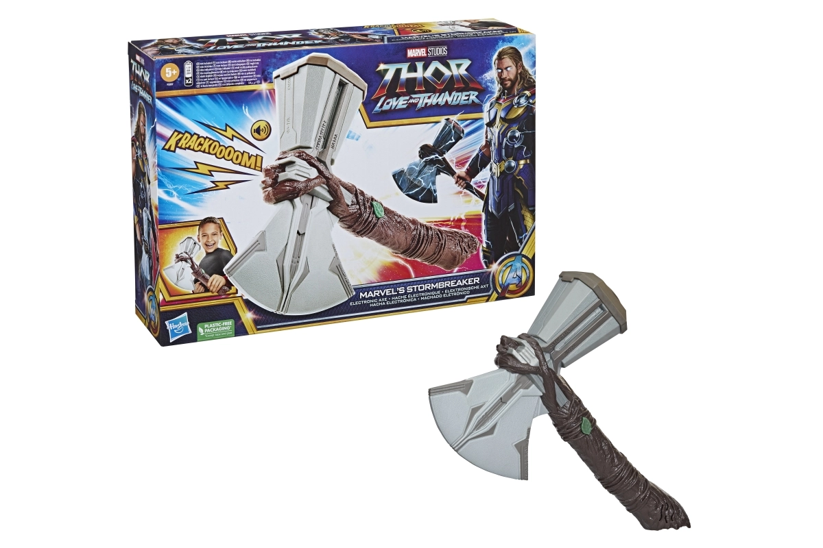 Ervaar de kracht van de AVENGERS met deze replica van de legendarische Stormbreaker-bijl. Het speelgoed is geïnspireerd op de film Thor: Love and Thunder en biedt kinderen en fans een authentieke beleving dankzij dynamische geluideffecten.