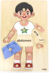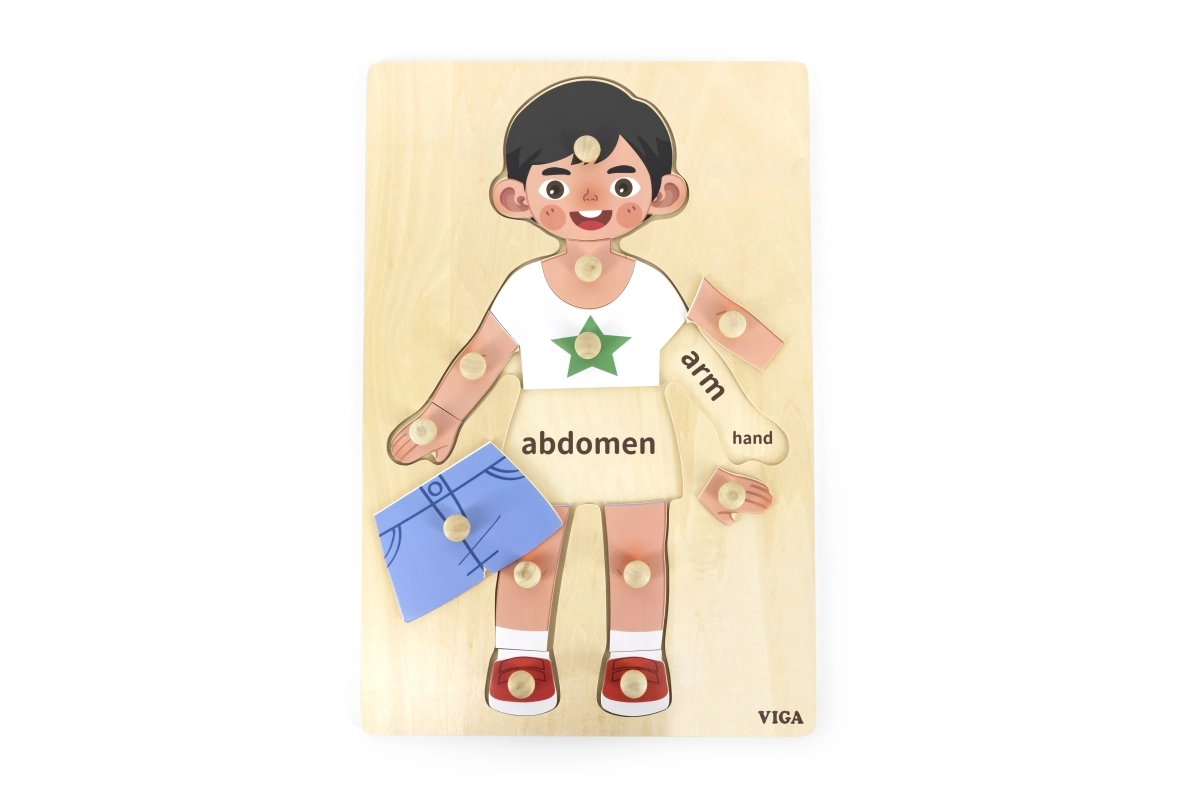 Ontdek een leuke en leerzame speelgoedset voor de kleintjes – een houten inlegpuzzel met het thema jongen. Stimuleert de fijne motoriek, logisch denken en het leren van onderdelen van het menselijk lichaam. Bevat 12 stukjes en is ideaal voor kinderen vanaf 18 maanden.