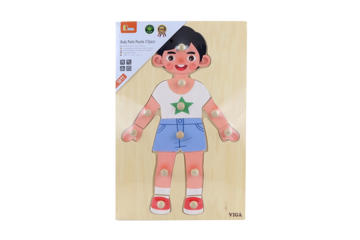 Deze kwalitatieve houten inlegpuzzel met een jongen als thema is een uitstekende keuze voor de ontwikkeling van kinderhandigheid. Dankzij de 12 stevige stukjes oefenen kinderen de oog-handcoördinatie en leren ze tegelijk de afzonderlijke lichaamsdelen herkennen. Geschikt voor thuis en voor in de kinderopvang.