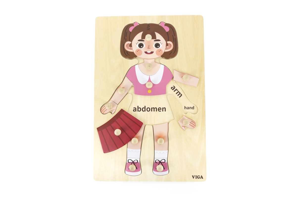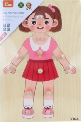 Deze houten inlegpuzzel – meisje is een uitstekend hulpmiddel voor de eerste kennismaking met het menselijk lichaam en de ontwikkeling van de oog-handcoördinatie. Dankzij de robuuste uitvoering en het aangename design zullen kinderen er snel dol op zijn en spelenderwijs fijne motoriek, geduld en concentratie trainen.