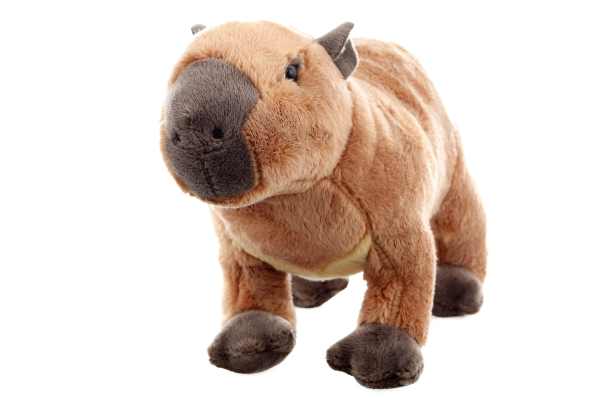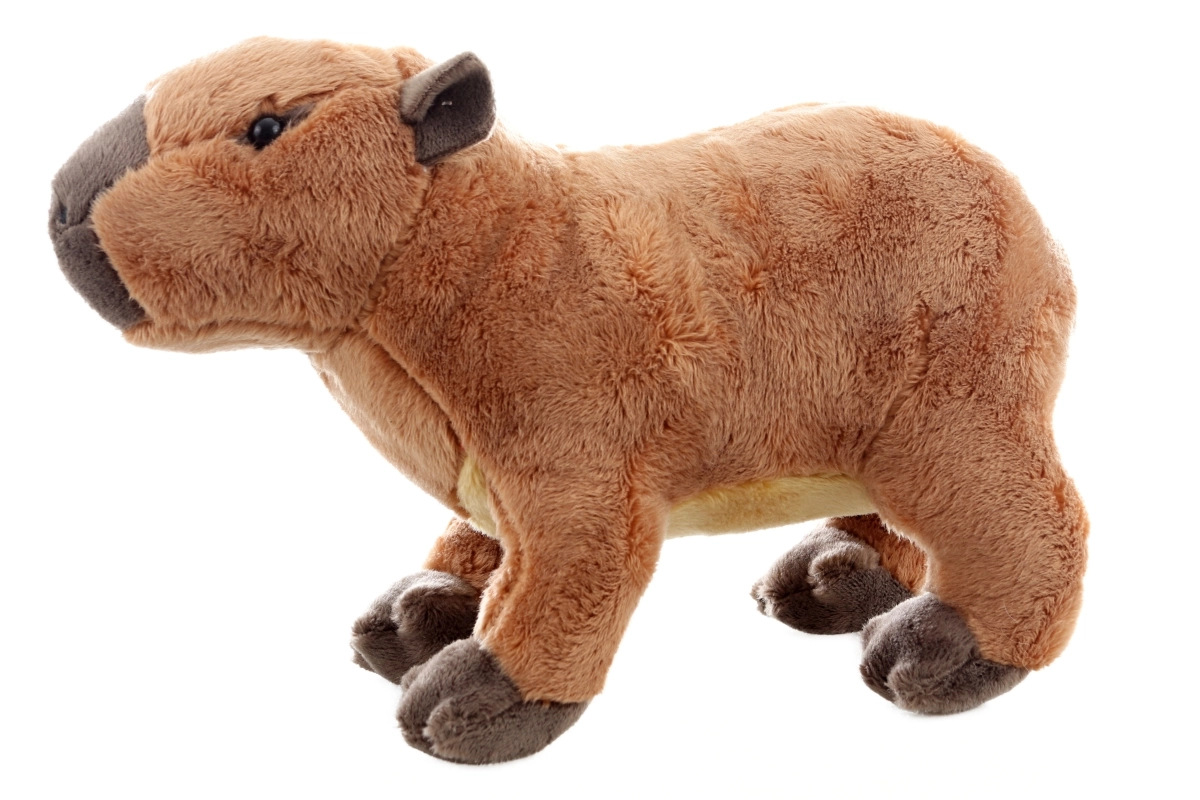 De pluchen capibara is gemaakt van een zacht materiaal dat vriendelijk is voor de kinderhuid en op elk moment van de dag uitnodigt tot een knuffel.