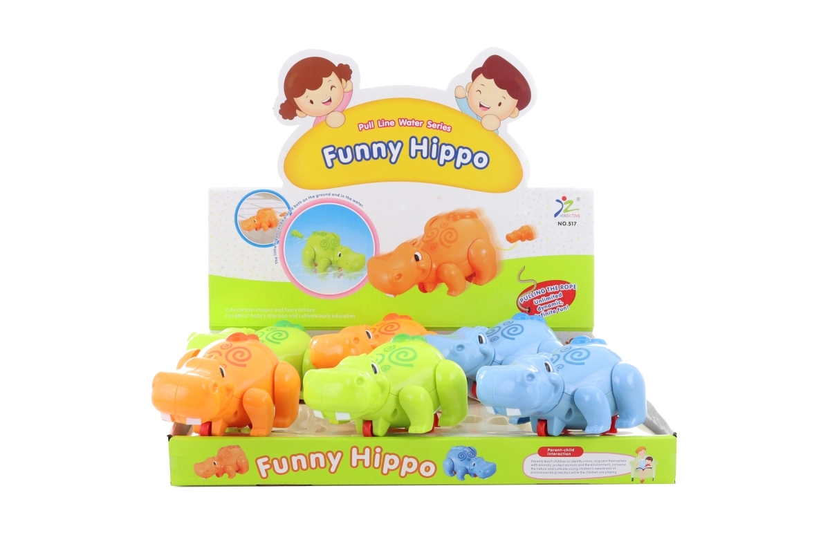 Schattig baby nijlpaard van plastic met een afmeting van ca. 15 × 6 × 10 cm, een plezier voor elke kleine dierenliefhebber. Niet opwindbaar, maar tijdens het rijden bewegen de ledematen, wat het een leuke en veilige speelgoed maakt voor kinderen vanaf 3 jaar.
