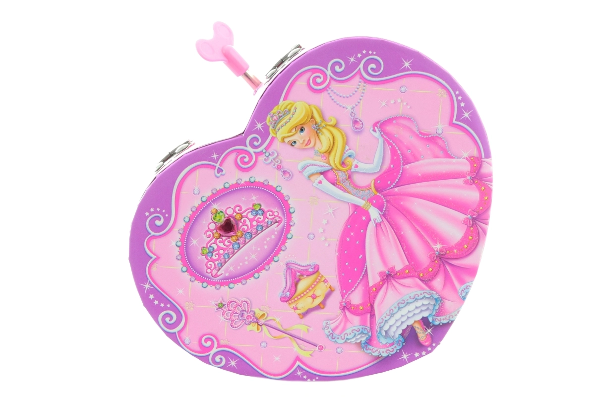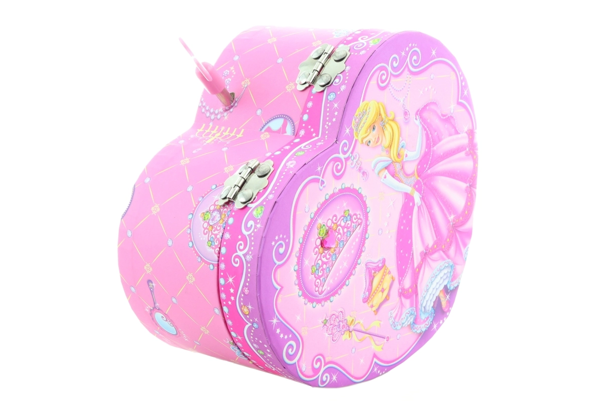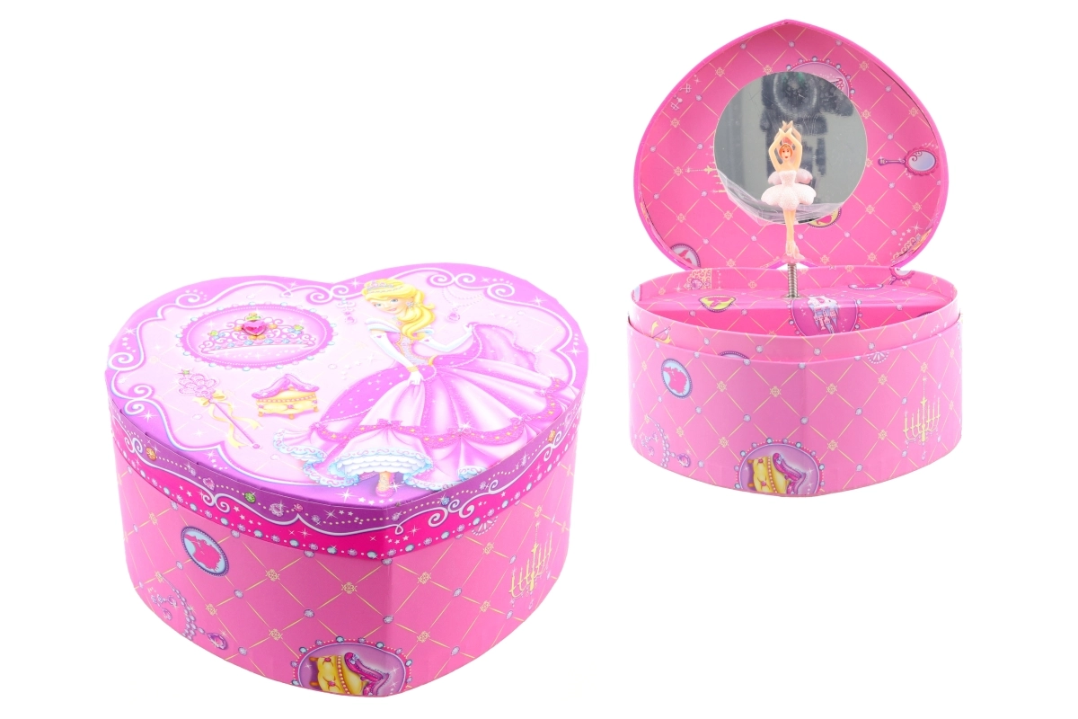 Een betoverende muzikale sieradendoos in hartvorm met een prinsessenmotief die elke liefhebber van accessoires zal verrassen. Na het opdraaien van het sleuteltje begint een balletdanseres te draaien en klinkt er een zachte melodie. Een praktisch spiegeltje, veilige opbergruimte voor kleine spulletjes en een schattig design maken van deze sieradendoos de ideale toevoeging aan de kinderkamer.
