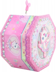 Een betoverende roze juwelendoos met muziekwerk en ronddraaiende ballerina die elke kleine dame zal verrukken. Na het opdraaien begint het figuurtje te draaien en speelt de doos een melodie, terwijl je binnenin praktische vakjes en een hartvormig spiegeltje vindt. Ideaal om kleine sieraden en schatten in te bewaren, met schattige motieven van katten en eenhoorns en een glinsterend oppervlak voor een betoverende uitstraling, zachte muziek en veilige opberging van kleinigheden.