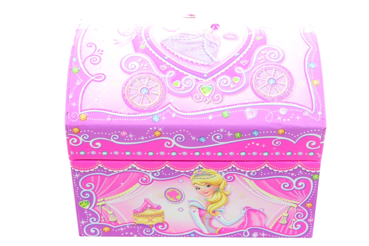 Een betoverende roze speel-sieradendoos voor kleine dametjes met een spiegeltje en een dansende ballerina die, na het opdraaien van het sleuteltje, begint te draaien en een zachte melodie laat klinken. Ideaal voor het bewaren van kinderjuwelen en schatten, met een veilig binnenvak en een lief prinsesselijk uiterlijk.