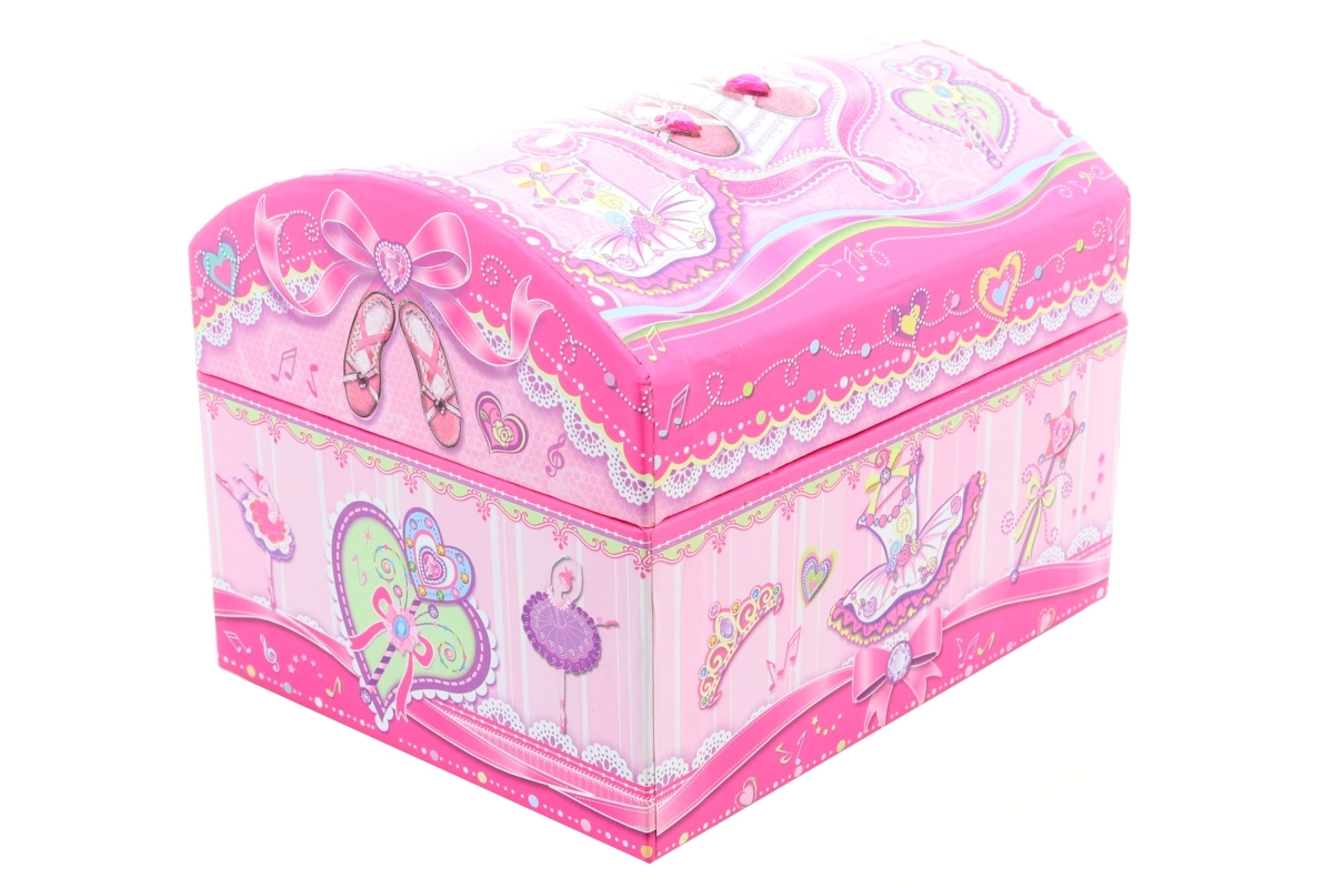 Binnenin vind je een praktisch spiegeltje en opbergruimte voor kleinigheden. De balletmotieven aan de buitenkant maken het een prachtige kamerdecoratie.
