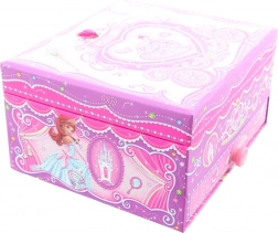 Betoverende roze sieradendoos voor kleine én grote liefhebbers van sprookjes. Na het opdraaien van het sleuteltje draait er binnenin een ballerina rond en klinkt er een zachte melodie. Binnen vind je een spiegeltje, praktische vakjes en een onderste lade voor kleine schatten. Afmeting ca. 16 × 14 × 9 cm. Ideaal voor ringetjes, oorbellen en kleine snuisterijen.