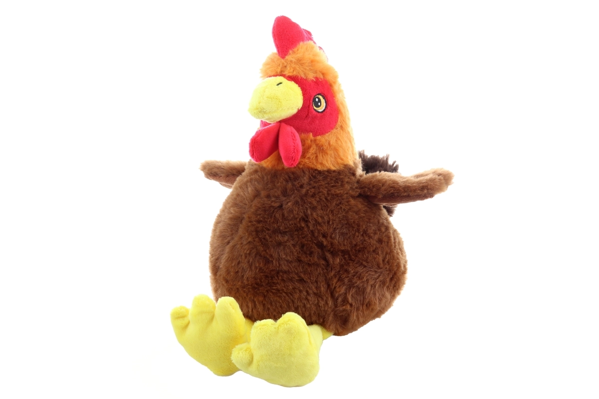 Geborduurde details zonder kleine losse onderdelen maken van de kip een geweldig speeltje al vanaf 0+.