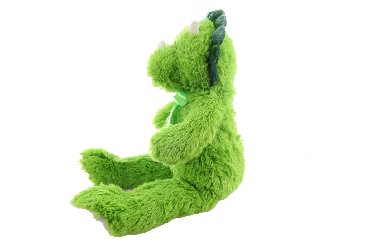 De groene dinosaurus met strik is een mooie decoratie voor de kinderkamer en een lief cadeau voor zowel jongens als meisjes. Geschikt voor onderweg, in het bedje en in de speelhoek.