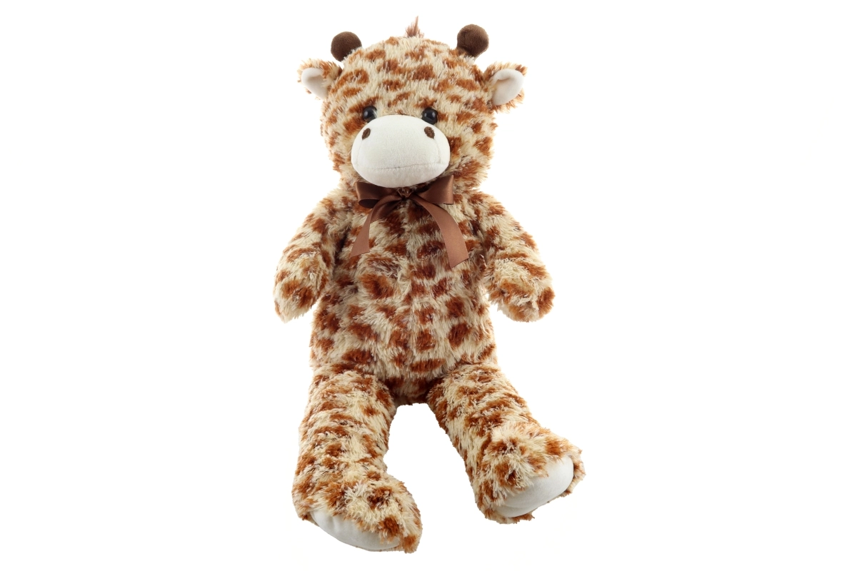 De extra zachte, pluizige vacht met bruin-crèmekleurige giraffenprint is mild voor de huid en nodigt de hele dag uit tot knuffelen.