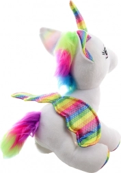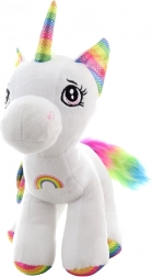 Deze witte pluchen eenhoorn met regenboogdetails is gemaakt voor zachte knuffels. De fluweelzachte buitenkant, geborduurde ogen en veilige afwerking zonder kleine afneembare onderdelen maken hem tot de perfecte metgezel voor baby’s en oudere kinderen. Hij blinkt uit door zijn schattige uiterlijk en lichte constructie voor dagelijks spelen en rustgevend in slaap vallen.