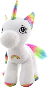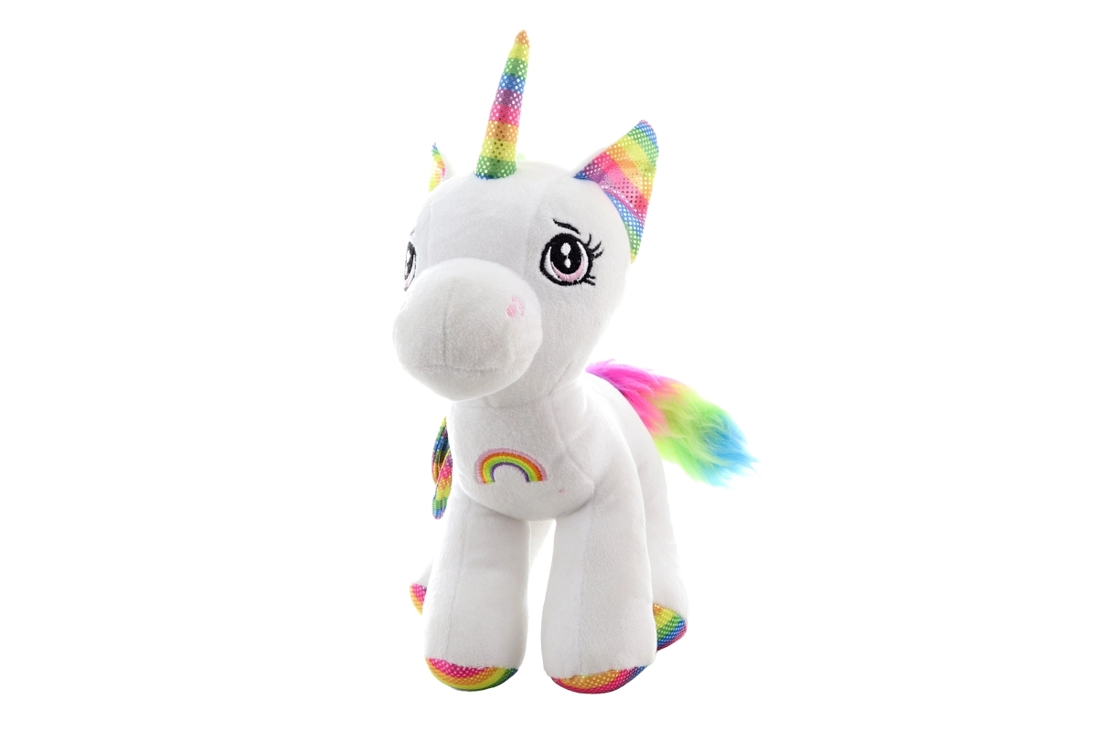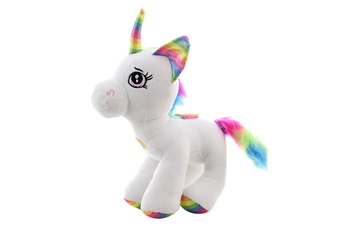 De regenboogkleurige hoorn, oortjes, hoeven, manen en staart geven de eenhoorn een sprookjesachtige look waar kinderen dol op zijn.