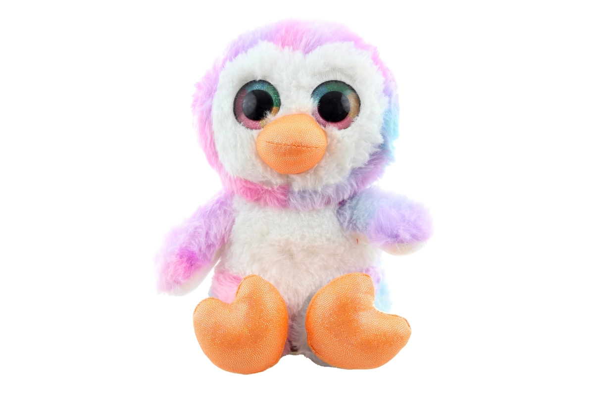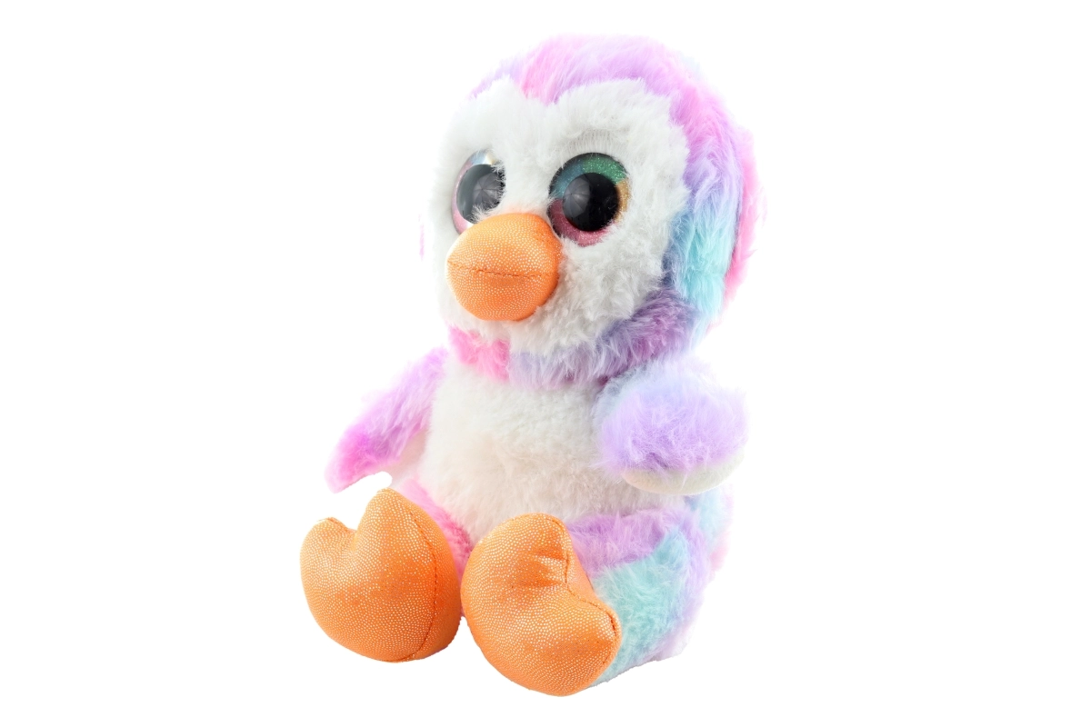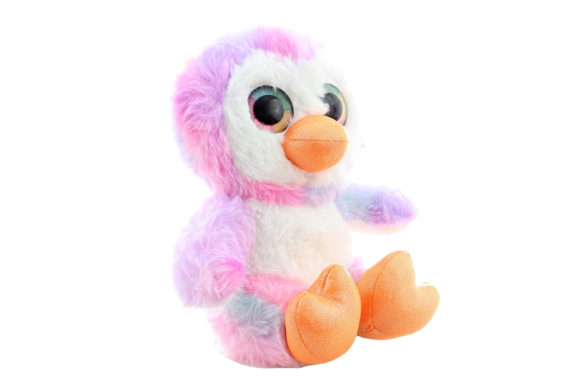 Betoverende grote glinsterende ogen en subtiele pasteltinten (roze, paars, blauw en wit) maken van de pinguïn een schattige toevoeging aan de kinderkamer.