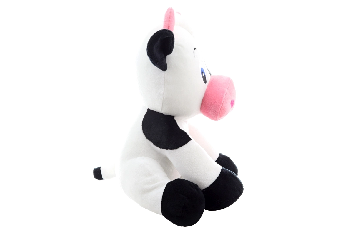 Dankzij de zachte, volle pootjes zit de koe mooi rechtop en is ze ook een lieve decoratie.