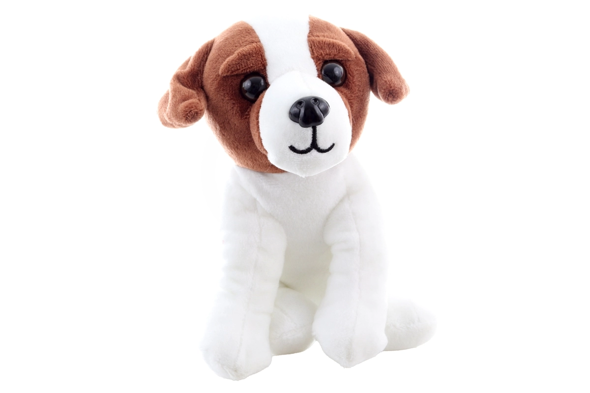 Een schattige pluchen hond van 18 cm hoog is het ideale knuffeldier voor kinderen vanaf de geboorte. Hij biedt een uitzonderlijk zacht materiaal, veilige afwerking zonder kleine onderdelen en een compact formaat om te knuffelen en mee te nemen op reis. Verkrijgbaar in 4 verschillende varianten – levering afhankelijk van de actuele beschikbaarheid.