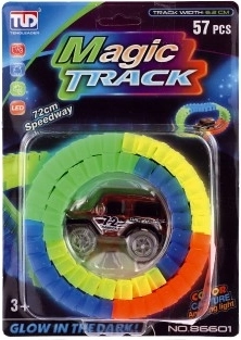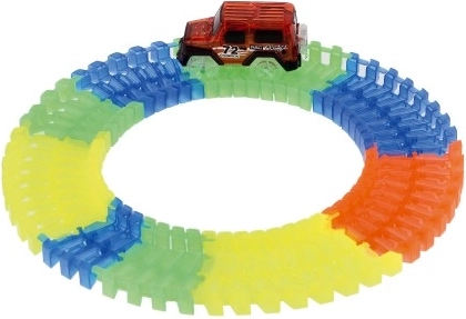 Bouw je eigen lichtgevende racebaan en stuur het snelle autootje de baan op! De flexibele stukken kun je eenvoudig in allerlei vormen buigen; de baan telt 57 delen en is 72 cm lang, en het autootje met 3 knipperende lampjes rijdt op 1× AA-batterij (niet inbegrepen). Ideaal voor kinderen vanaf 3 jaar – plezier, creativiteit en ontwikkeling van de fijne motoriek.