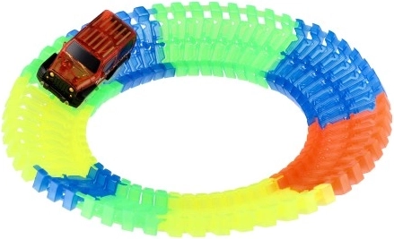 De neonsegmenten van de baan lichten prachtig op in het donker en dankzij de flexibele constructie kun je ze naar wens buigen en tot nieuwe routes samenklikken. De baan aanpassen is zo gebeurd.
