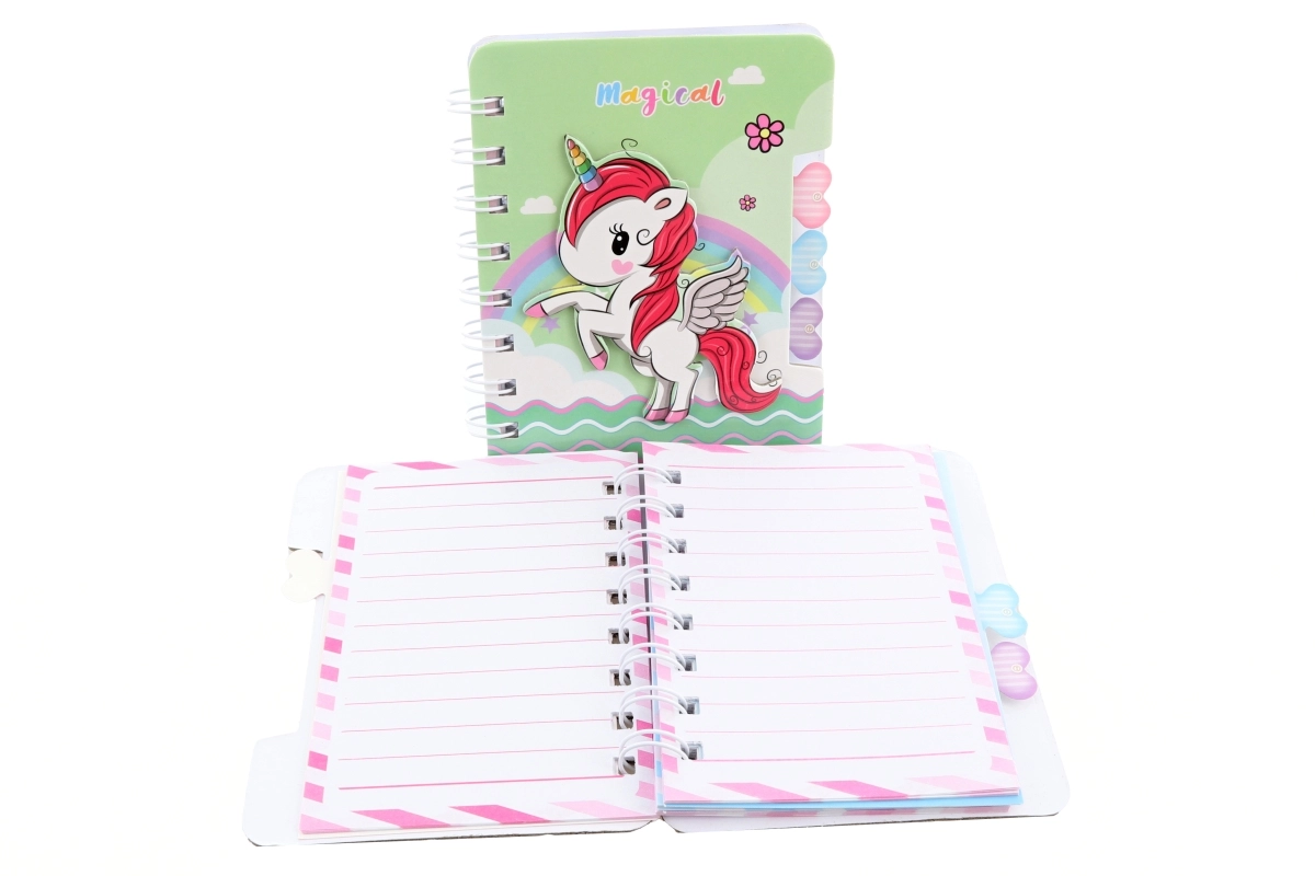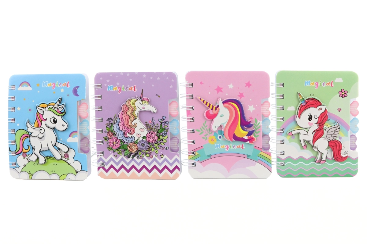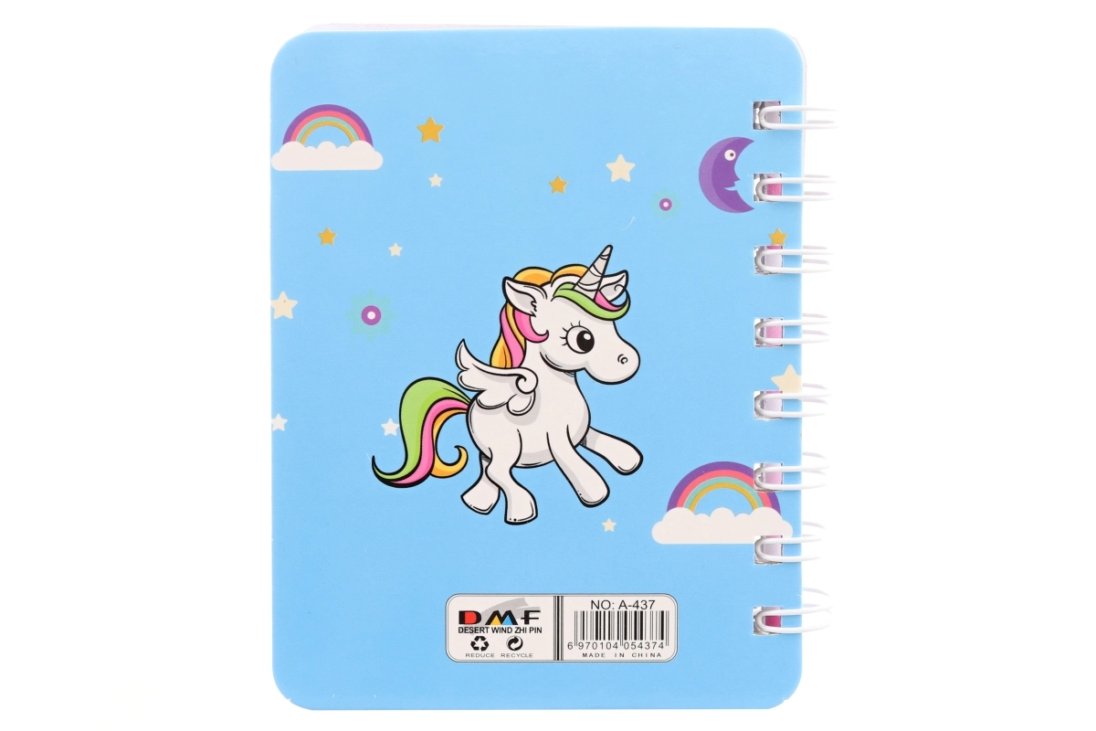Een schattig mini-notitieboek met eenhoornthema dat zowel kinderen als volwassenen zal bekoren. Dankzij het compacte formaat past het in elke tas en is het ideaal voor snelle notities of tekeningetjes. Het heeft gekleurde gelinieerde bladen, een spiraalbinding voor gemakkelijk omslaan en meerdere pastelontwerpen met eenhoorns. Perfect als klein cadeau of schoolaccessoire. Let op: dit product is geen speelgoed.