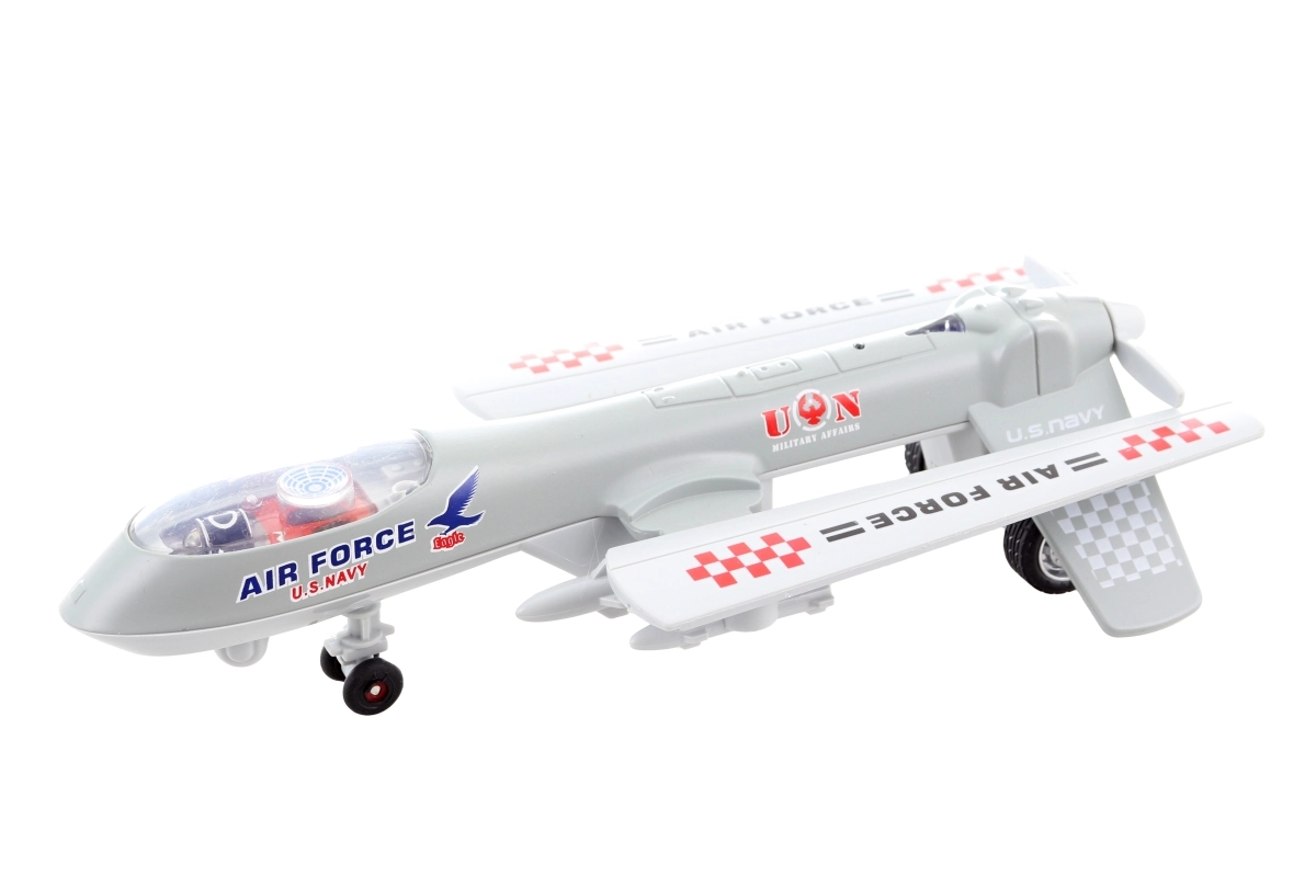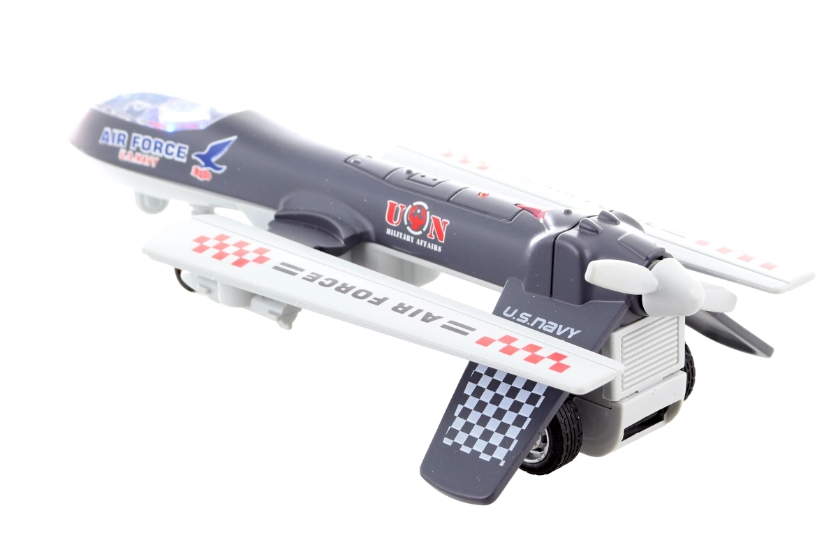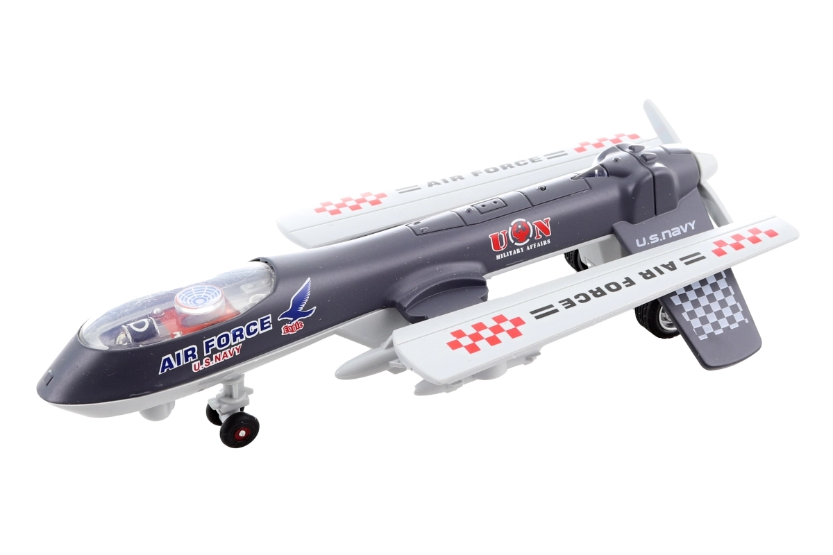 Dit gedetailleerd uitgewerkte metalen vliegtuig combineert een robuuste constructie met aantrekkelijke effecten die de verbeelding van kinderen prikkelen. Dankzij de terugtrekmotor hoef je het vliegtuig alleen naar achteren te trekken en los te laten – het schiet vanzelf vooruit, terwijl het knippert en vlieggeluiden afspeelt.