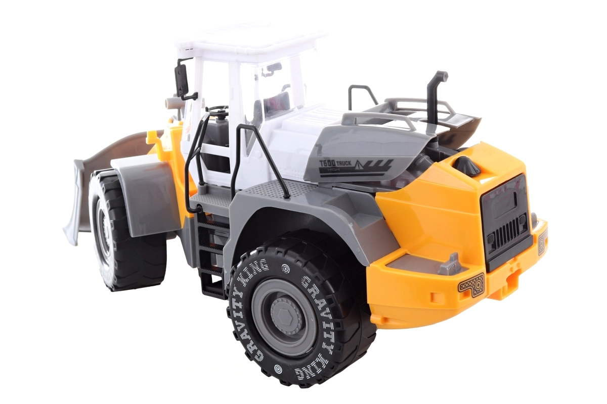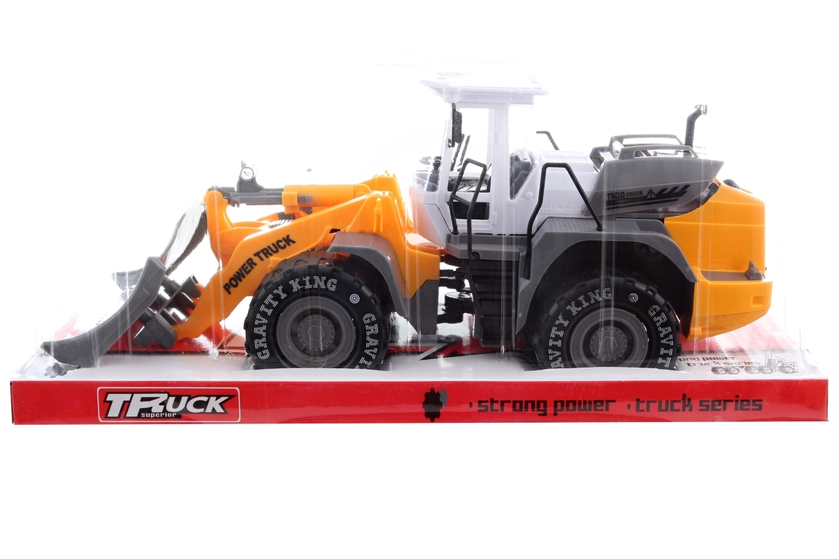 De kunststof schuiver met vliegwiel is een hit voor elke jonge fan van bouwmachines. Na een simpel duwtje schiet hij vooruit en bootst hij het werk op de bouw realistisch na. Dankzij de robuuste wielen en de bewegende voorste schep scheppen kinderen moeiteloos zand, steentjes of blokken.