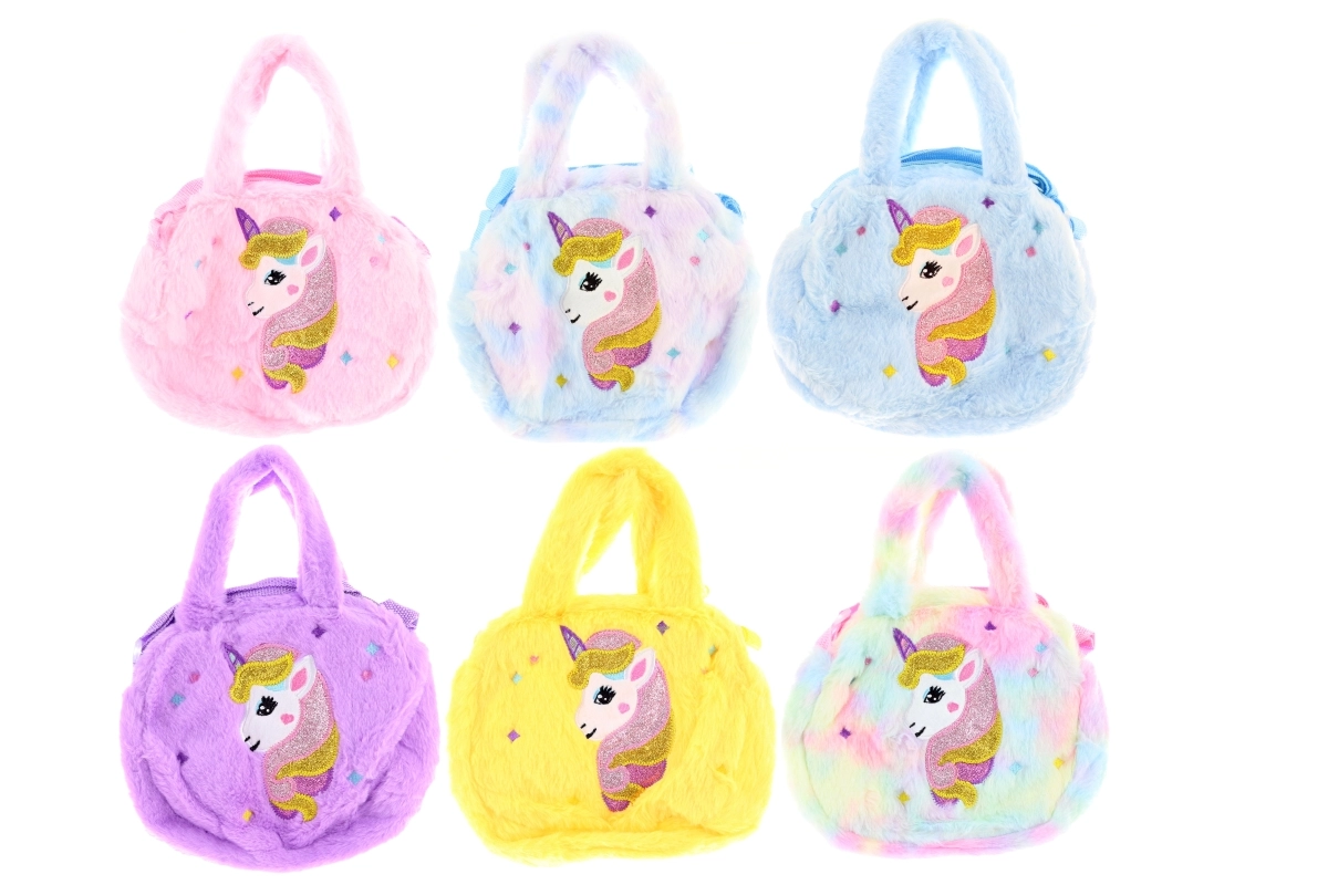 Deze superzachte pluche handtas met het geliefde eenhoornmotief is een stijlvolle accessoire voor kleine en grote liefhebsters van fantasie. Dankzij het compacte formaat is hij perfect voor spullen zoals sleutels, portemonnee of telefoon, terwijl hij licht en comfortabel blijft om te dragen.