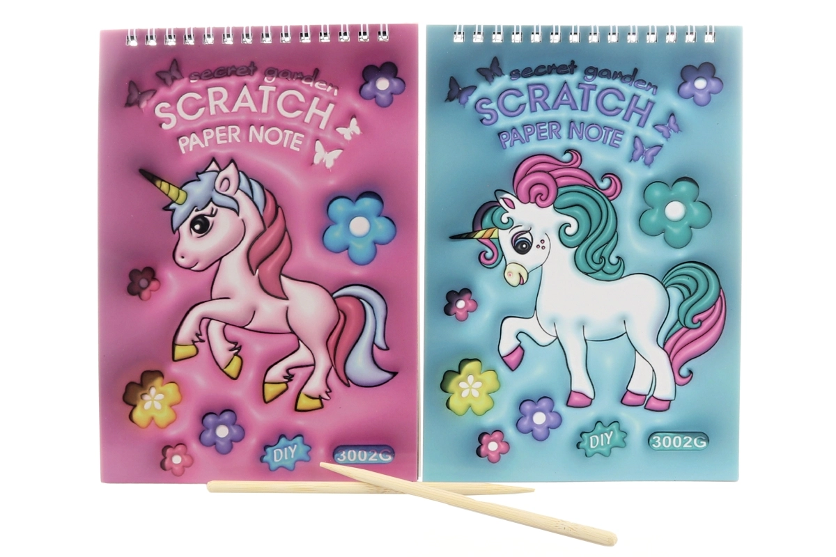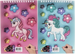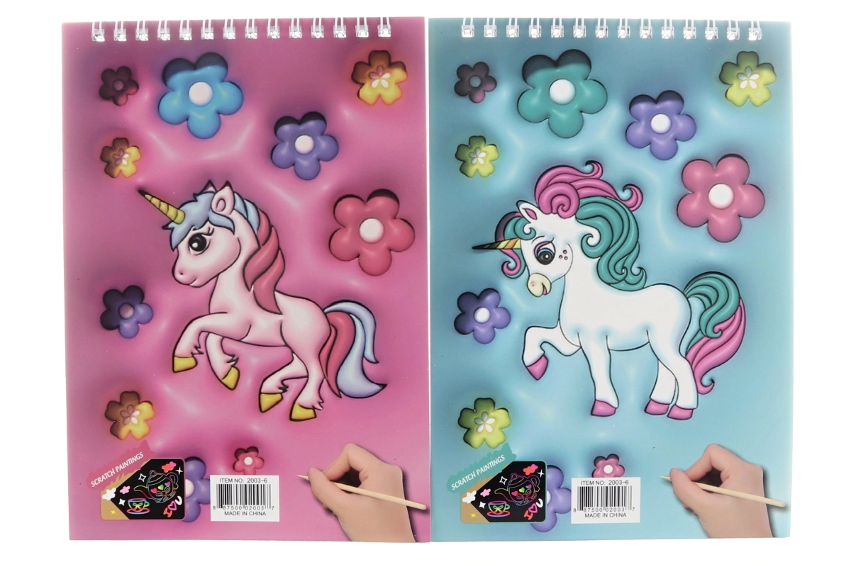 Creatief krasboekje met eenhoornthema dat elke kleine kunstenaar zal verrassen. Bevat 8 zwarte vellen met een gekleurde achtergrond, waarop je met de meegeleverde houten pen originele afbeeldingen kunt maken. De praktische spiraalbinding en het compacte formaat van 14 × 20 cm maken het ideaal voor onderweg en thuis.
