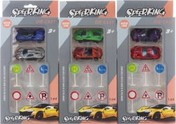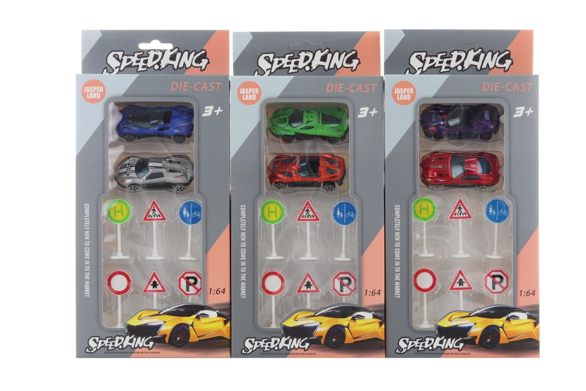 Leuke set metalen autootjes met realistische kunststof verkeersborden voor kleine bestuurders. Geweldig voor het stimuleren van de fantasie en het leren van verkeersregels, ideaal als cadeau voor kinderen vanaf 3 jaar.