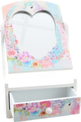 Houten sieradendoos met hartvormige spiegel Eenhoorn