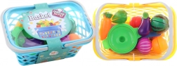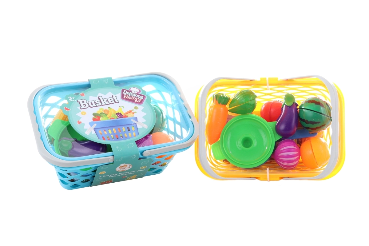 Ontdek de complete set voor kleine chef-koks! De kunststof mand met handvatten kun je ook gebruiken als boodschappenmand en bevat alles wat je nodig hebt voor kookspel – van fruit en groenten, via een doosje koffie en thee, tot een snijplank en een veilig mesje. Het speelgoedeten is verbonden met klittenband, zodat kinderen het gemakkelijk kunnen “snijden” en weer aan elkaar kunnen maken.