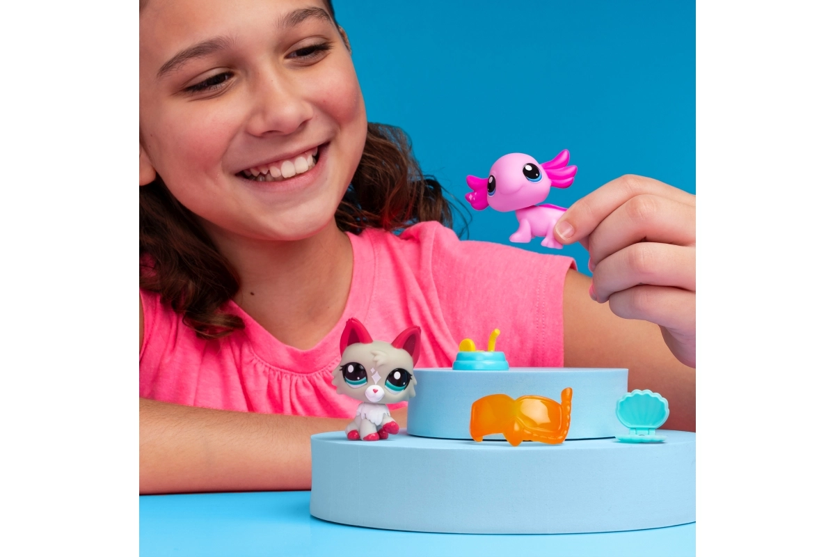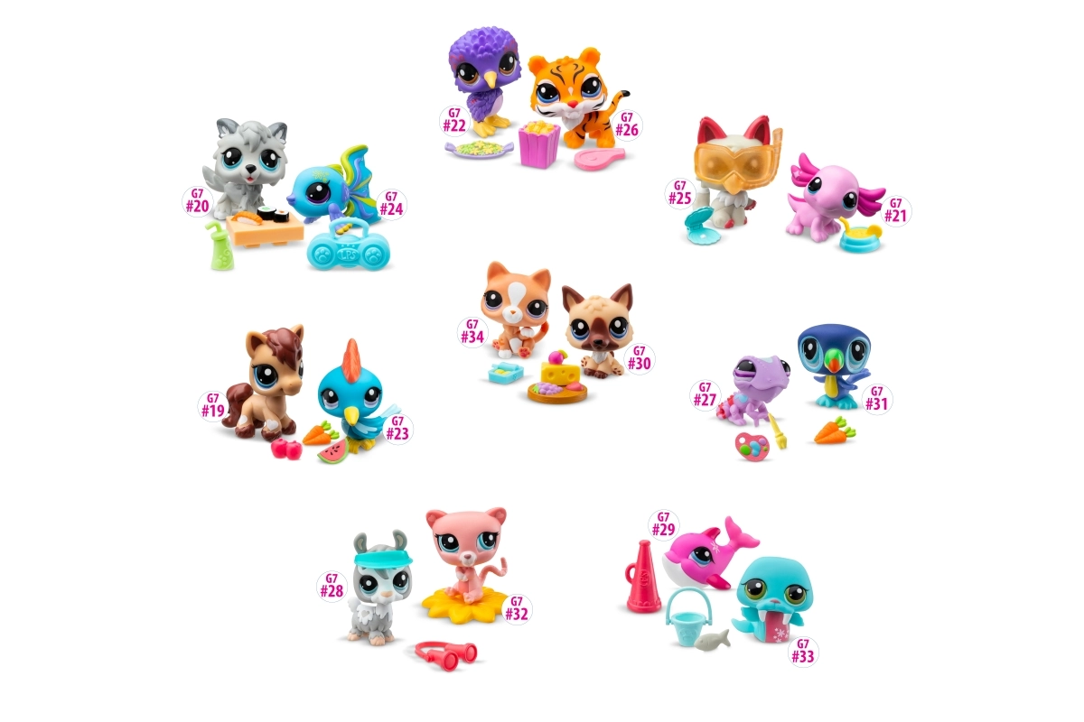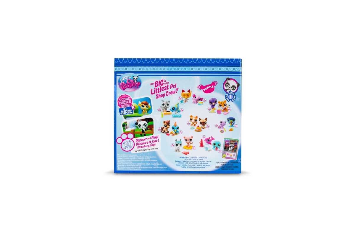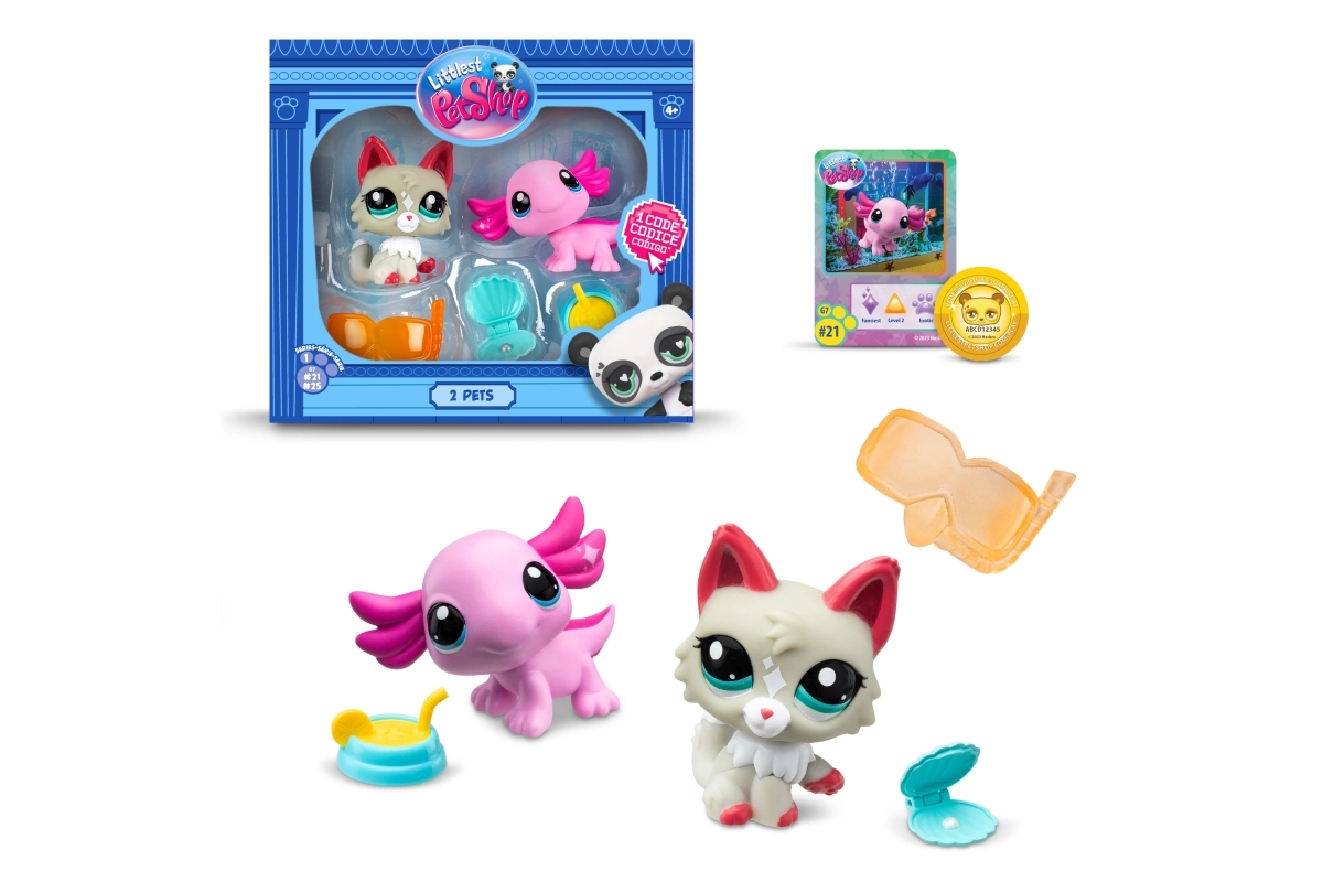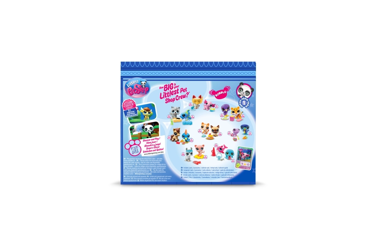 Serie 1 introduceert meer dan 65 nieuwe vriendjes – van panda en kat tot axolotl en miereneter. Elke verpakking bevat twee gedetailleerde figuren met de kenmerkende grote ogen en een bewegend/bobble hoofd, kleine thematische accessoires en een code om exclusieve content te ontgrendelen in de digitale wereld van Littlest Pet Shop.