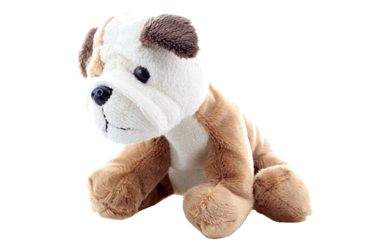 Geïntegreerde korreltjes helpen de vorm en stabiliteit te behouden, zodat de buldog mooi rechtop zit op een plank of bed.