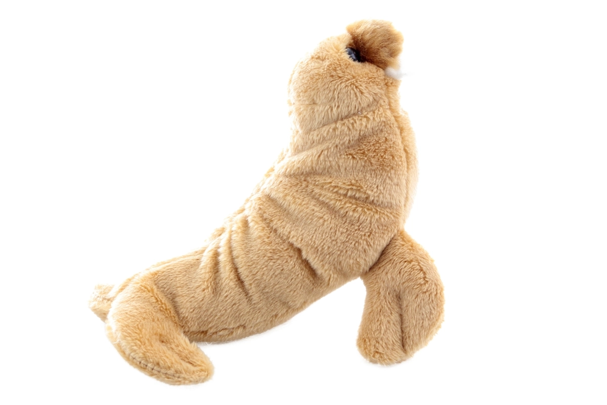 Geïntegreerde korreltjes in de vulling helpen de walrus zijn vorm en positie te behouden op een plank of tafel.