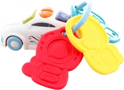 Leuke kinderautosleutels verrassen kleine automobilisten met realistische effecten. Na het plaatsen van batterijen produceren ze startgeluid, toeteren, vergrendelen en spelen een vrolijke melodie af. Een lichte en duurzame kunststof speelgoed voor kinderen vanaf 12 maanden, die het gehoor, de fijne motoriek en de verbeelding stimuleert.