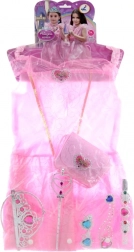 Jurk, handtasje, kroontje, toverstok, sieraden (ketting, armbanden, oorbellen, ringen)