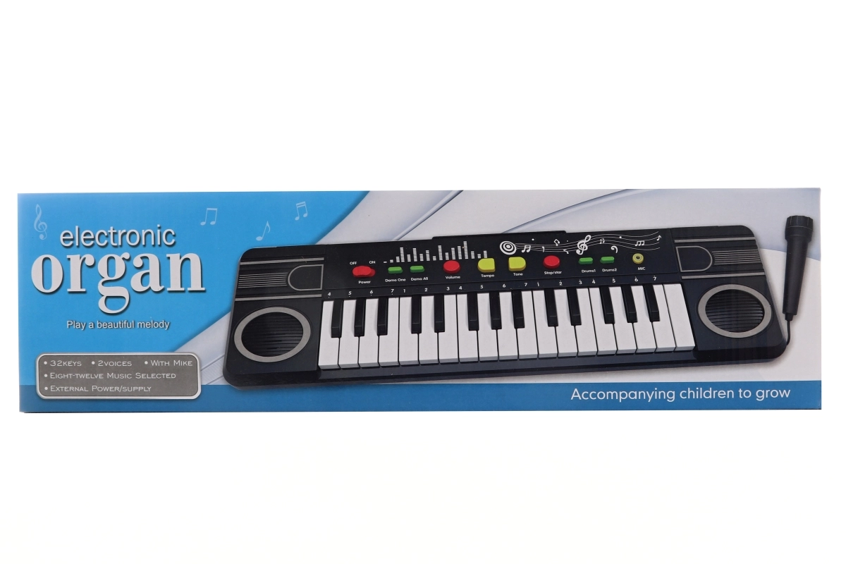 Leuke kinderpiano op batterijen met 32 toetsen en een geïntegreerde microfoon die muzikaal gehoor en creativiteit stimuleert. Lichtgewicht kunststof constructie, eenvoudige bediening en voeding via 3× AA-batterijen (niet inbegrepen) maken het een geweldige keuze voor kinderen vanaf 3 jaar.