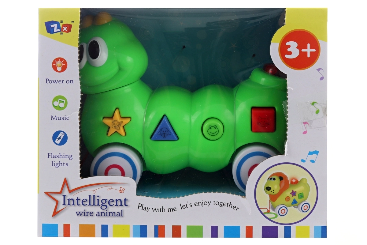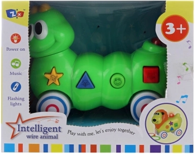 Deze kleurrijke trek-rups is een ideale speelgoedd voor de eerste ontdekking van de wereld van geluid en beweging. Dankzij de knoppen met dierafbeeldingen geeft hij na het plaatsen van de batterijen boeiende geluiden weer, die kinderen vermaken en tegelijk helpen om afzonderlijke diergeluiden te herkennen.