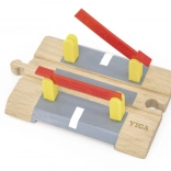 Deze hoogwaardige houten overgang is een perfecte toevoeging aan elke houten treinbaan en wegenset. Beweegbare rode slagbomen en opvallende palen bootsen het echte verkeer levensecht na, zodat kinderen zich makkelijk in het spel onderdompelen en hun eigen verkeerssituaties bedenken.