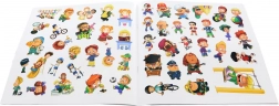 Twee vellen kleurrijke stickers met vrolijke motieven stimuleren de fantasie en laten je afbeeldingen afwerken of schriften en dagboeken versieren.