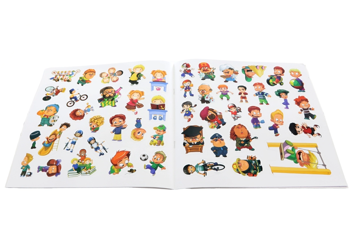 - 5 dubbelzijdige kleurbladen, 2 stickervellen