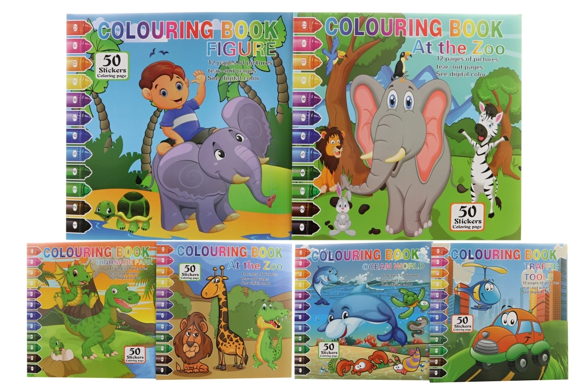 - 5 dubbelzijdige bladen – veel afbeeldingen om in te kleuren.