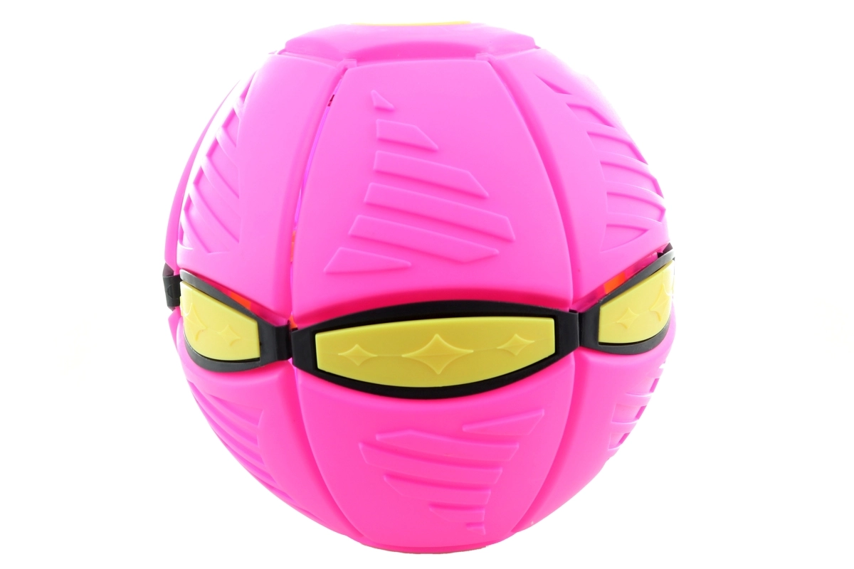 Een leuke werpschijf die na de landing in een bal verandert, ideaal voor jong en oud. Binnenin zit een veertje en een zuignap voor een betrouwbare transformatie, gemaakt van duurzaam plastic en bevat een AG13-batterij. Eenvoudige verandering van schijf naar bal, baldiameter 15 cm, lichteffecten op AG13-batterij, geschikt vanaf 3 jaar.