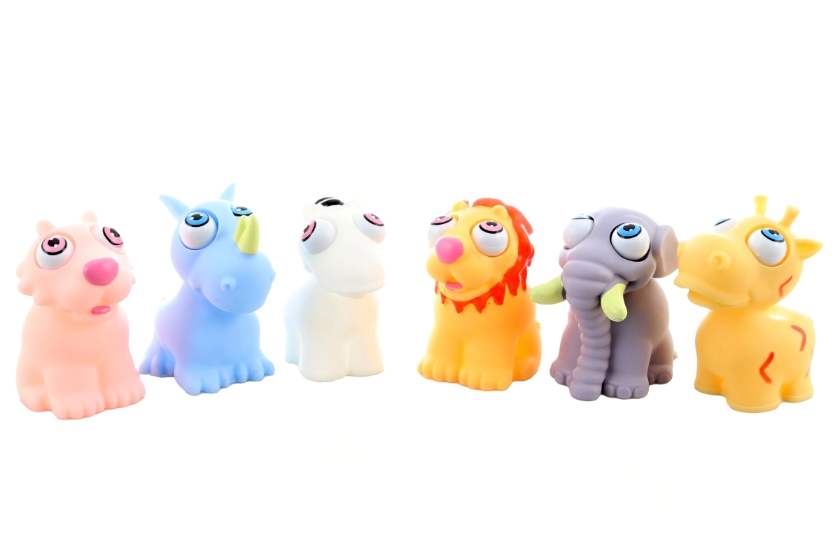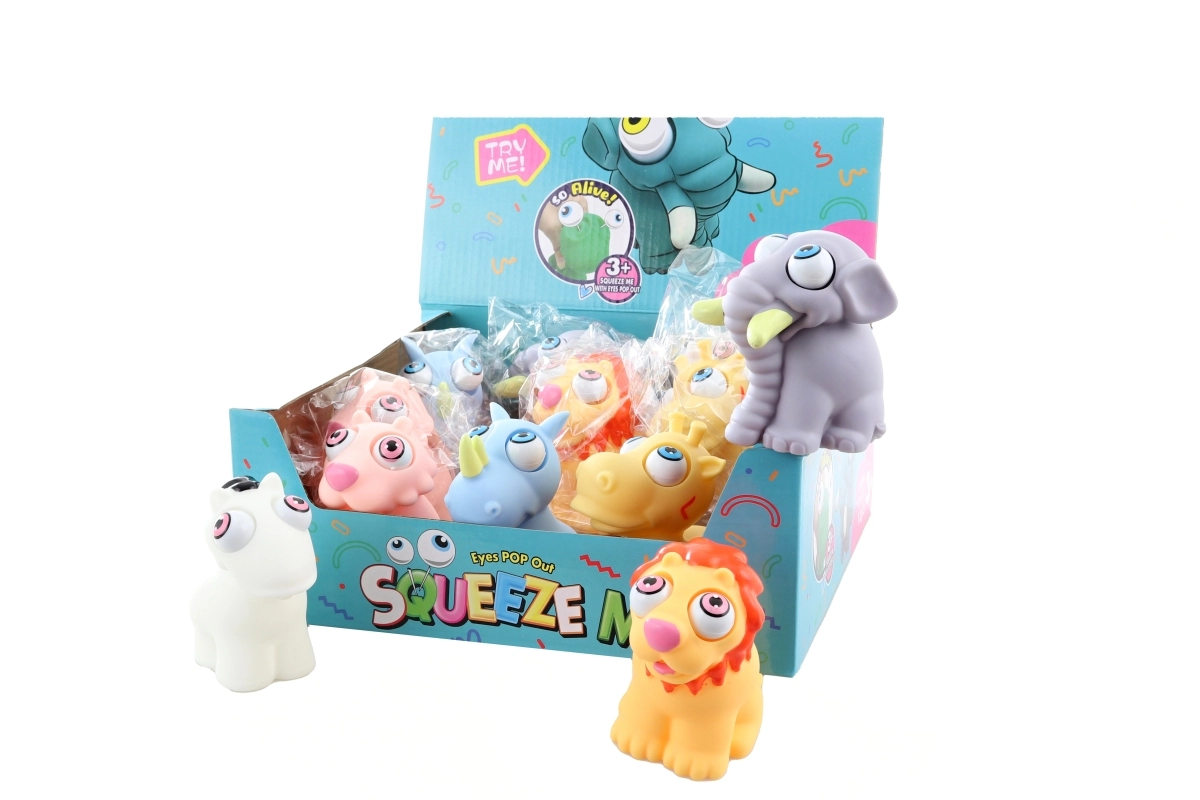 Ontdek de leuke knijpdieren met grote ogen die bij druk grappig naar buiten schieten. Dankzij het zachte plastic knijpen ze prettig en zijn ze geweldig voor het oefenen van de fijne motoriek en als antistress-speelgoed voor kinderen vanaf 3 jaar.