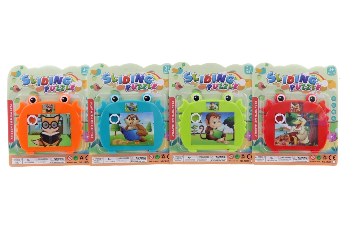 Een leuke schuifpuzzel met dieren voor kinderen vanaf 3 jaar die logisch denken, geduld en fijne motoriek ontwikkelt. Bevat 11 stukjes en 1 leeg vakje voor eenvoudig schuiven, is licht en compact voor onderweg en wordt geleverd in verschillende dierenmotieven afhankelijk van de voorraad.