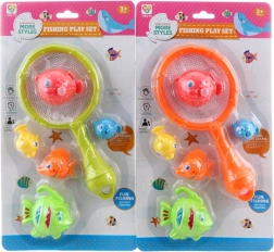 In de verpakking vind je een schepnet en 5 visjes in verschillende vormen en maten, aantrekkelijk door hun kleurrijke uitvoering. Perfect voor plezier in bad, een klein zwembadje of als visspel in de kinderkamer.